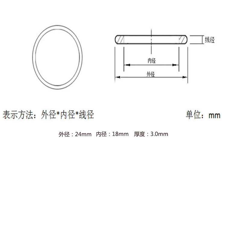 產(chǎn)品名稱:O型密封圈外經(jīng)24mm 線經(jīng)3.0mm