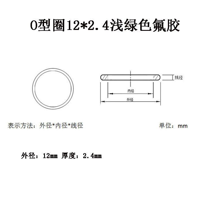 產品名稱:防水密封圈氟膠O型圈密封圈12*2.4淺綠色