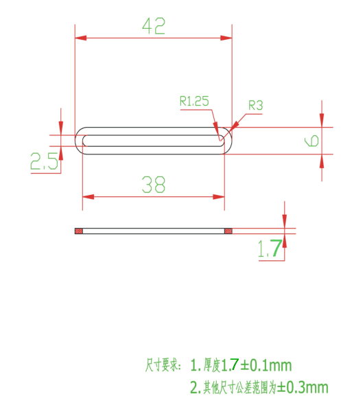 產品規格:白色絕緣襯條42*6*厚度1.7mm尺寸圖: