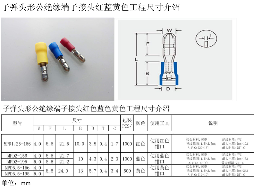 產品介紹:產品名稱:子彈頭公母全絕緣端子