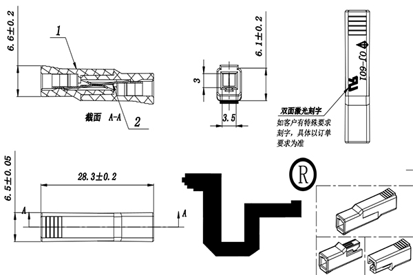 產品規格:DC-601拔插式公母對接端子規格尺寸圖介紹: