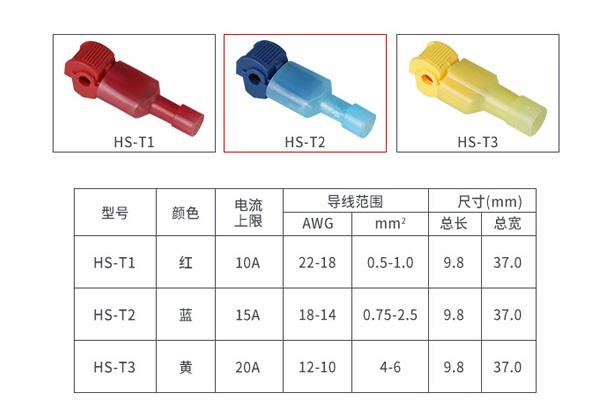 藍色T-2 適合1.0-2.5平方線材使用 導(dǎo)電材質(zhì):純銅 最大電流:15A