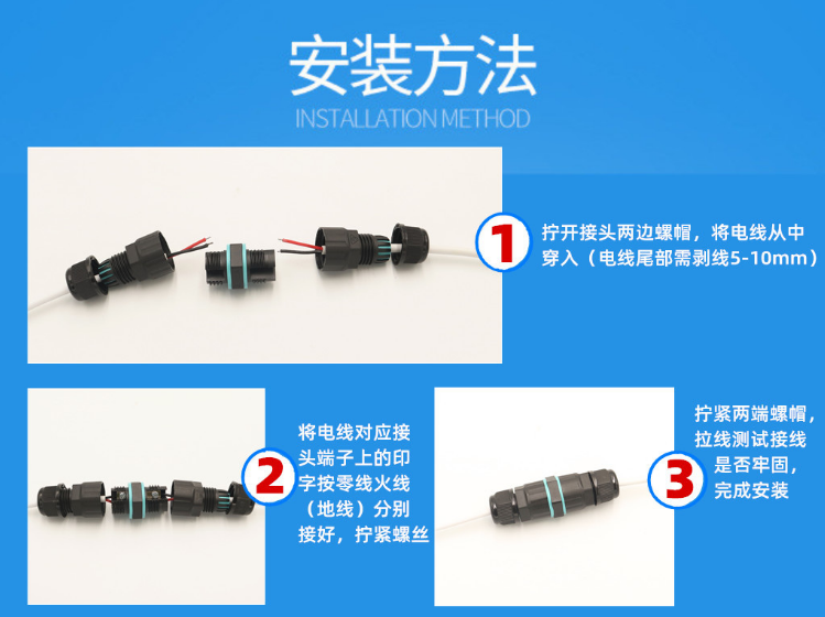 3.采用橡膠材質密封墊、密封管,尼龍材質牙管、螺帽緊配,有效起到防塵防水效果