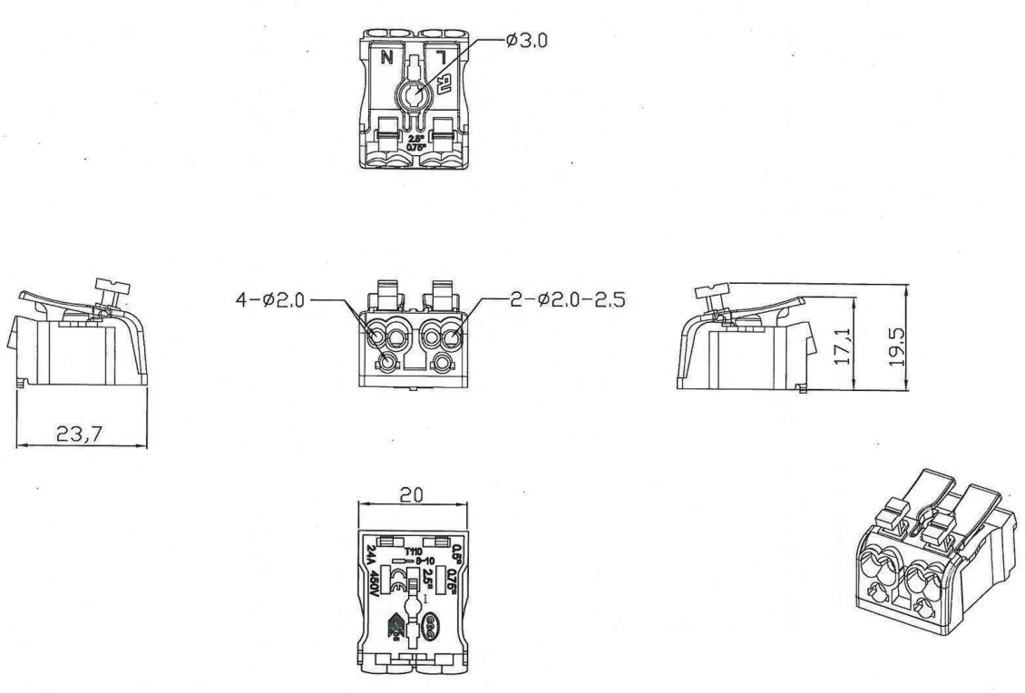 【產(chǎn)品用途】:為供電用端子模塊,用于連接燈具及其它設(shè)備。可連接0.75 至 2.5 mm2單股、多股以及細(xì)多股導(dǎo)線??蛇x配多款地極接線片和線夾