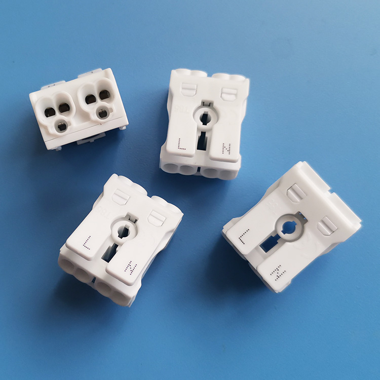 特點(diǎn):推插自助鎖線式,容易裝配固定于燈盤上(附“J”形插腳)