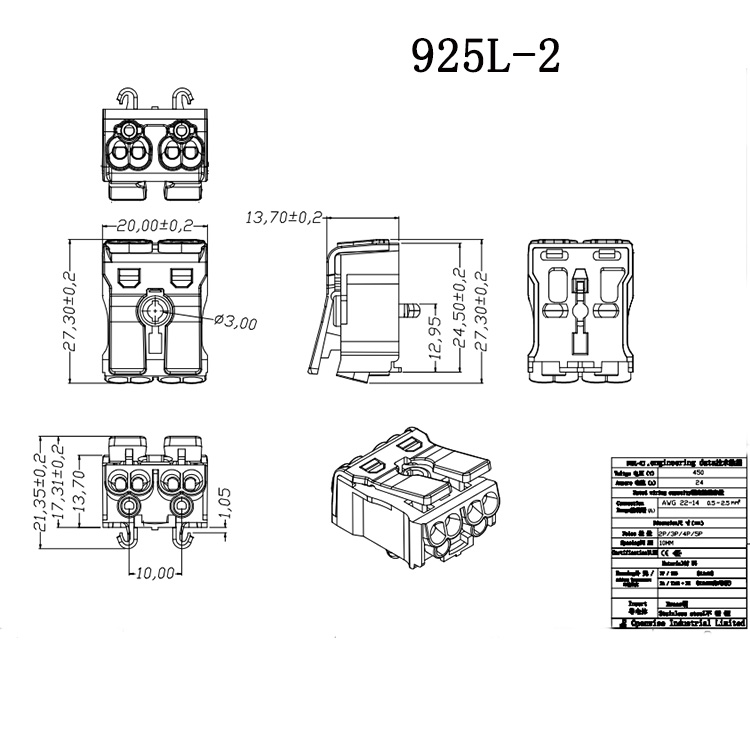 925L雙按壓端子臺(tái)尺寸:
