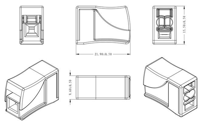 產品使用:首先將線剝去外皮9-10mm ,將剝去外皮的單股硬導線插入連接器圓孔,后將方孔側的活動部分壓到底 把導線放入方孔后松開即可。