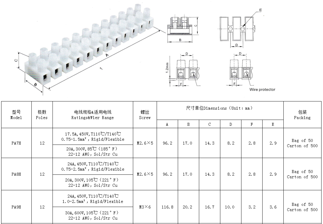 ● 符合IEC/EN60998GB/T13140和UL 1059標準要求。