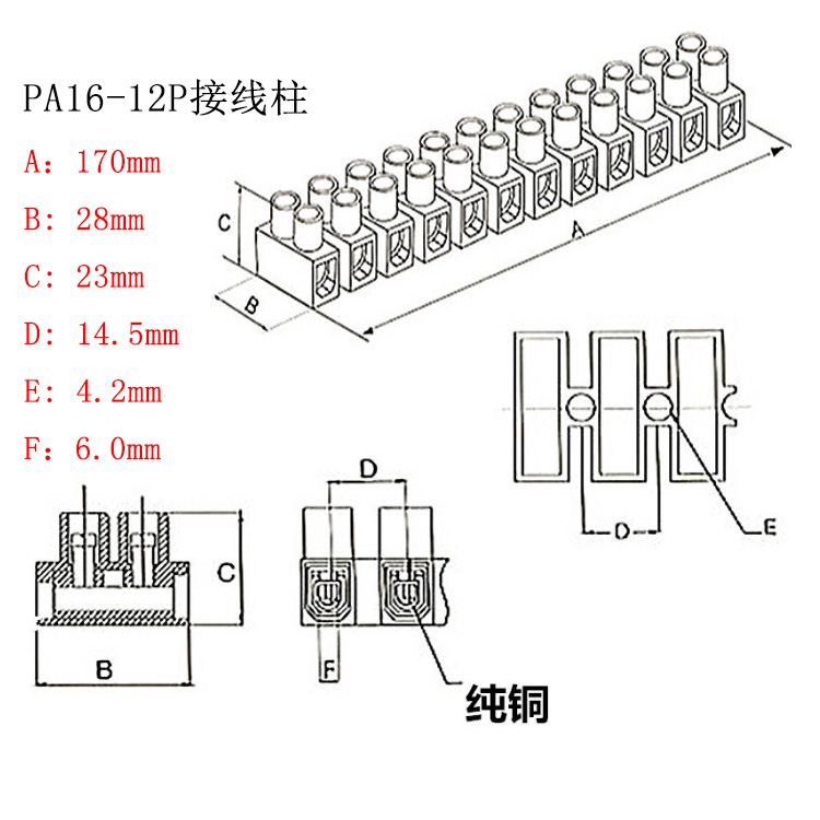 材 質:采用尼龍制成膠殼絕緣性佳不易老化內部為銅管連接柱