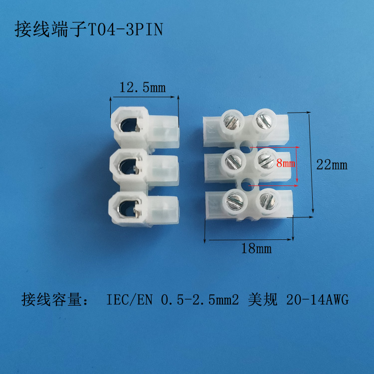 T04-3PIN接線端子尺寸圖: