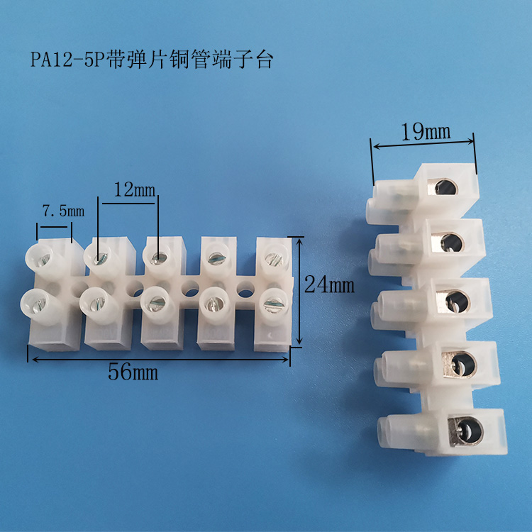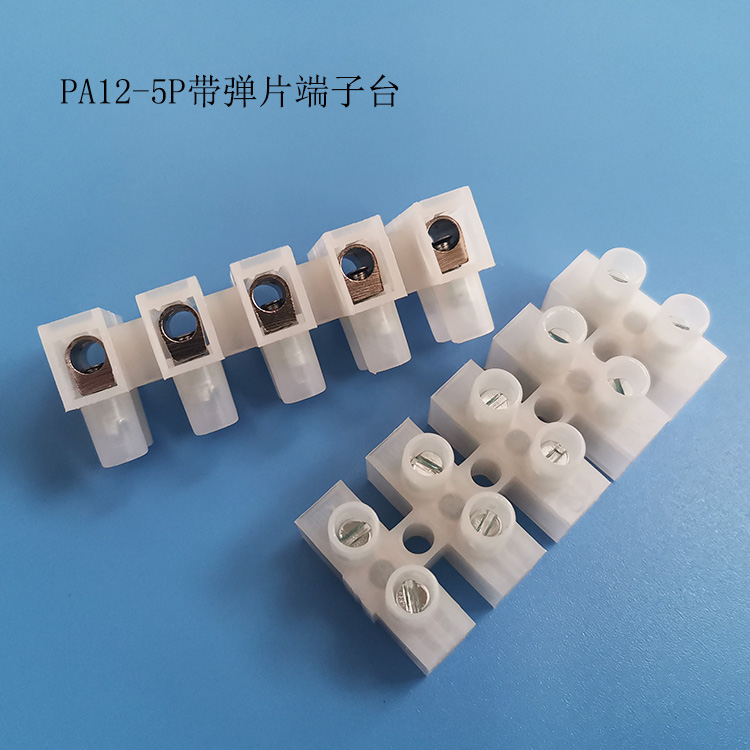 產品名稱:銅管帶彈片端子臺PA12-5P接線柱尼龍阻燃端子五位