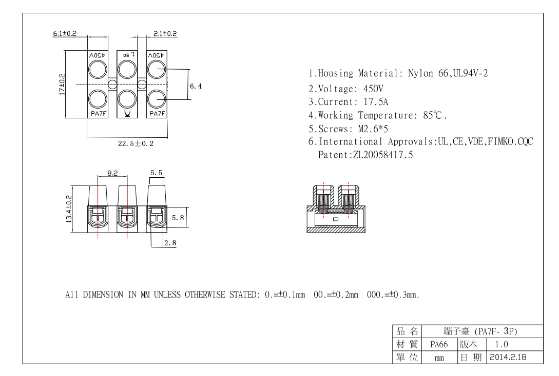 PA7F-3PIN端子臺(tái)尺寸圖: