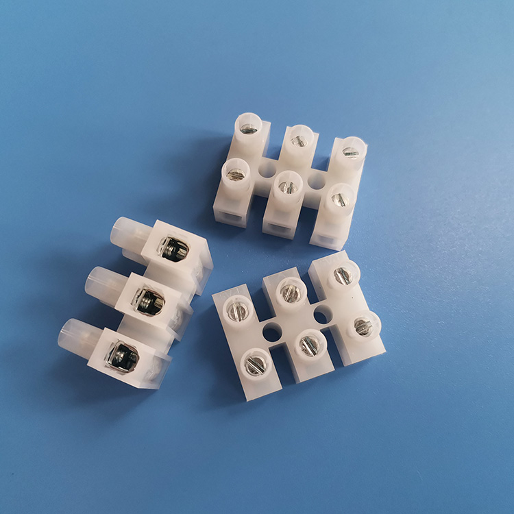使用方法:電線剝除絕緣皮后插入端子兩側,鎖上螺絲即可。