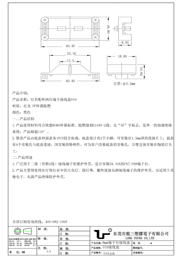 用途:廣泛用于二級(俗稱2線)接線端子的保護外殼,產品主要用使用在燈飾行業中的天花燈,筒燈等,最終連接電源接線端子的保護外殼。也適用于其他電子,電器產品絕緣防護外殼。