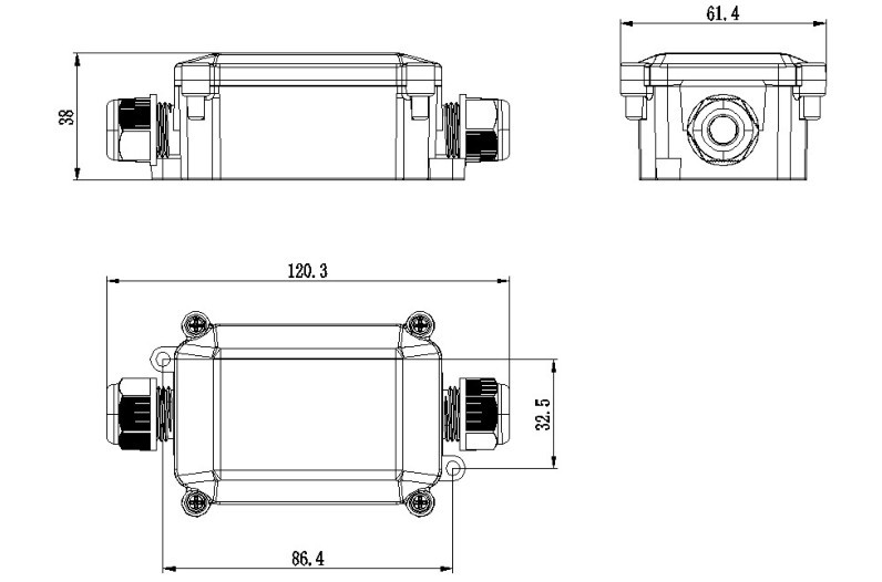 OJ-5718防水接線(xiàn)盒尺寸圖: