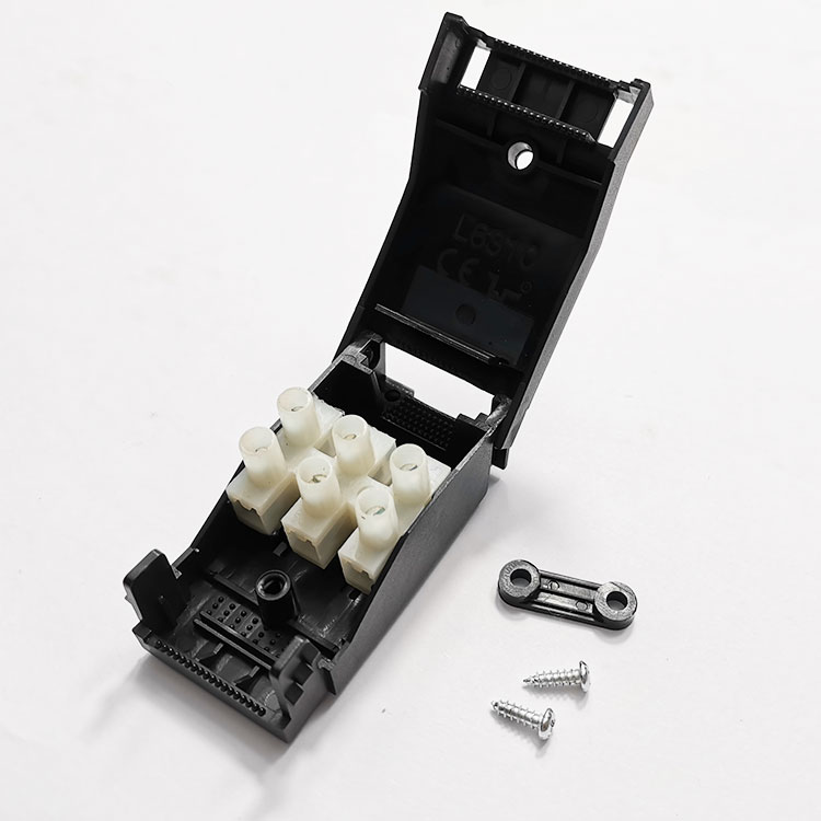 產品詳細介紹:L6310是龍三塑膠標準件廠自行研發制造生產的新產品。不同于其他接線盒需要配多個螺絲固定才能鎖緊防拉,非常的麻煩,龍三生產的這款線盒真正講的是的快接快捷。這款線盒只需要由上蓋和下蓋配一個3*10mm的紅螺絲固定即可,如果還需要測試更大的拉力,可以在配一個壓線板用兩個五金螺絲固定就好了。L6310接線盒放端子的內部設計為圓柱形,由此可配按壓型端子臺,也可配鎖螺絲的端子臺PA9 PA10 爬電距離10mm 。線盒底部設計有三個固定扣用于固定機箱壁板,不會移動。