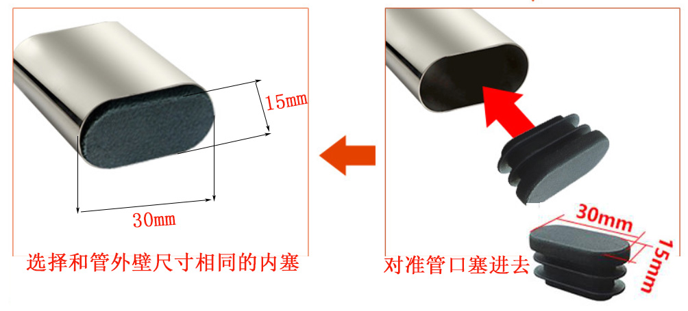 例如:鐵管外徑為15*30毫米,那就買"15X30"規(guī)格的管塞!