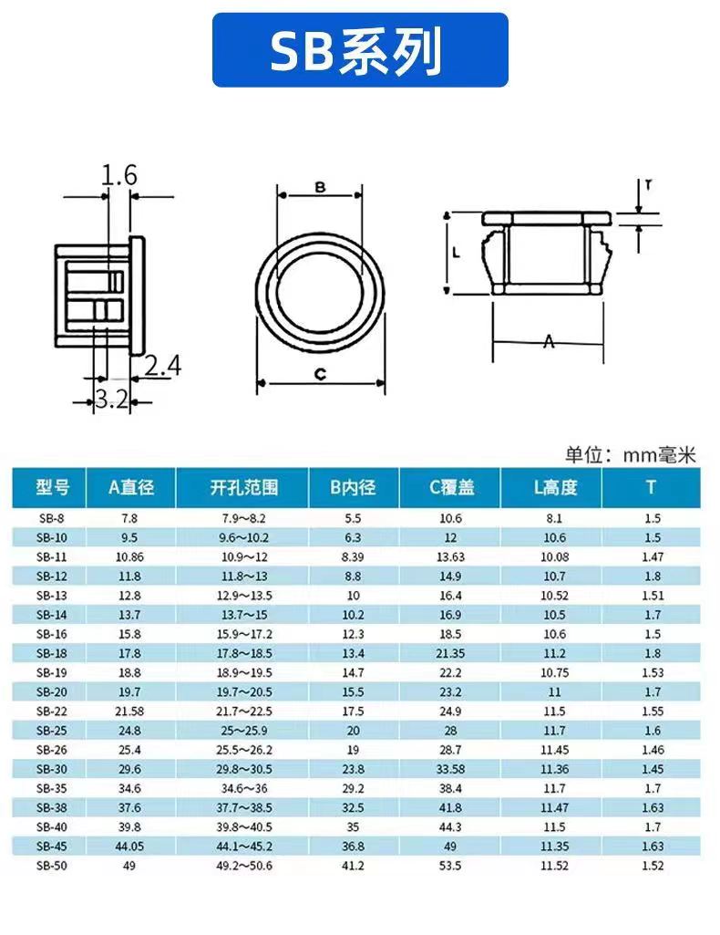 扣式護線套尺寸圖:
