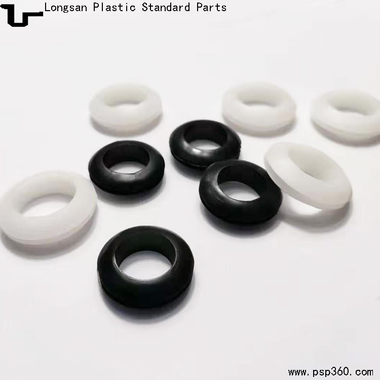產品特點:護線圈卡在金屬板上,使粗糙的鐵孔變成圓滑的出線孔,中間穿電線,保護電線不被金屬板割傷。