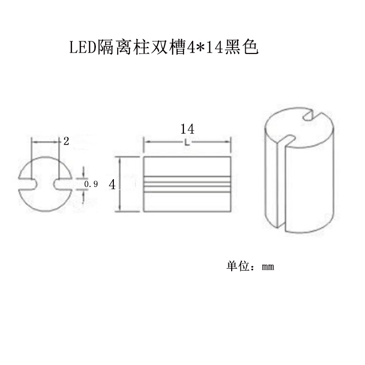 產品名稱:LED隔離柱雙槽4*14mm黑色發光二極管間隔柱