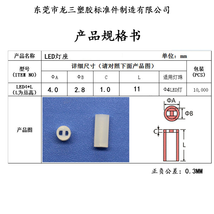 產(chǎn)品用途:用于保護(hù)LED立于PC板上,使高度一致,中間隔板設(shè)計(jì),接腳不會彎曲,折斷,短路
