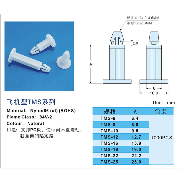 產品名稱:TMS-12平底絕緣隔離柱單頭飛機型隔離柱4.5mm孔線路板支撐柱