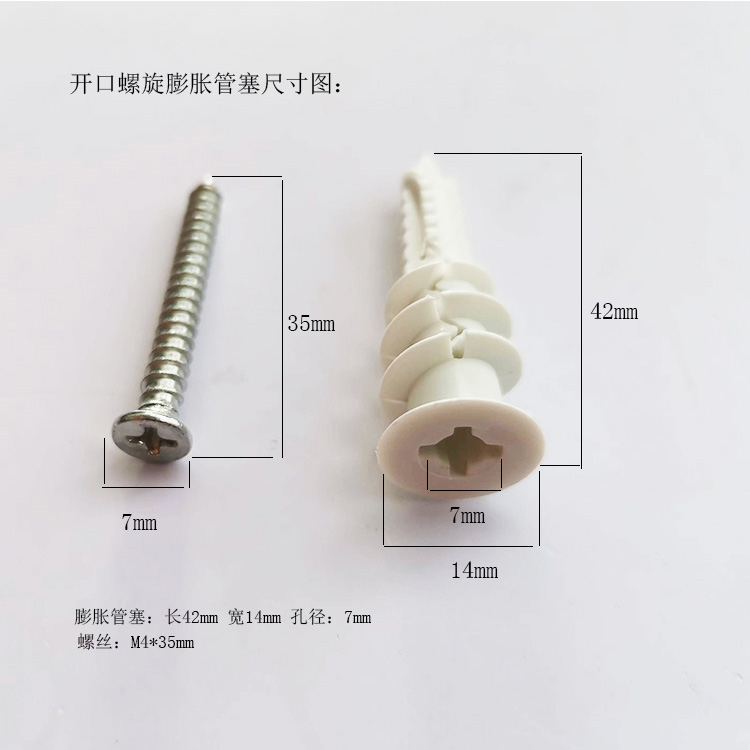 膨脹管配套:一般用需要自攻螺絲使用頭型不限如:沉頭自攻螺絲,圓頭自攻螺絲,大扁頭自攻螺絲,外六角內六角自攻螺絲、雙頭螺絲等,(周邊附件:墊片、螺絲蓋、膠圈、掛勾等)避免使用快牙(比較鋒利木螺絲)以免螺絲螺絲螺絲在迫進時切斷膨脹管體。建議配套加硬自攻螺絲安裝使用,以發揮更好的摩擦力,達到理想的緊固效果。