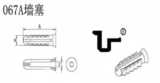 067A塑膠壁虎至少能承受15KG以上重物懸掛,配備M3x20-30mm長的金屬自攻螺絲,067A塑膠壁虎的塑膠肉體比較厚實,采用PP PE韌性塑膠生產制作,所以金屬自攻螺絲吃膠不會使墻塞的外露面爆裂,采用M3、M4的自攻螺絲都可以.這種小型塑膠壁虎墻塞因為肉厚扎實加之所在的壁板或墻體不一定很寬厚,所以金屬自攻螺絲達到墻塞總長的4/5左右就可以滿足不會松脫的條件了,當然能刺破前端的膠頭讓塑膠膨脹螺絲完全爆開會更好一些,這就是塑料膨脹管的作用和用途!