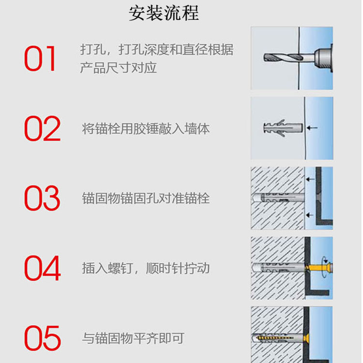 產品用途:可用于固定燈具 畫框 隔板 窗簾安裝