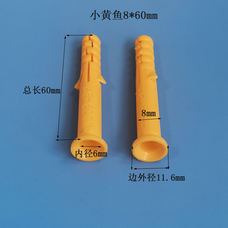 產品名稱:小黃魚8*60mm膠塞膨脹管 魚形帶帽螺絲套