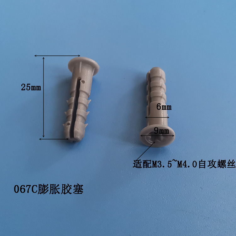 產品名稱:膨脹管M6塑膠墻塞067C膨脹膠塞塑料膨脹壁掛M4自攻螺絲適用