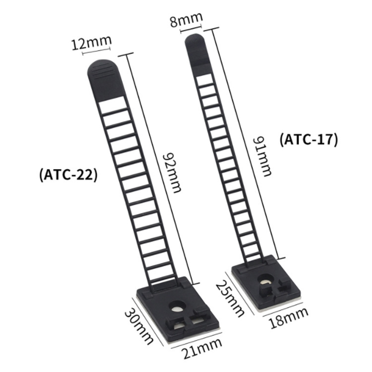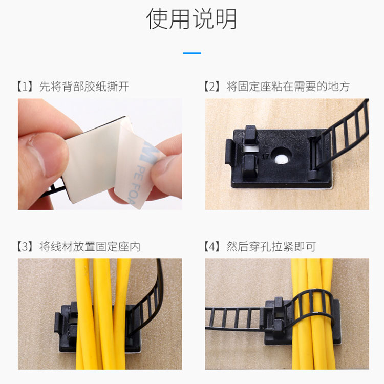 介紹: 此扎帶背面粘膠非常牢固粘上很難脫落,當一般扎帶使用更好可以隨意松解..廣泛使用于機箱內部理線、工程布線束線,美觀大方,采用階梯式可調節設計,可根據線的大小進行調節束線,并可隨意松解,非常實用。