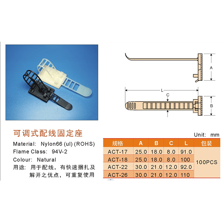 特點 : 絕緣,耐腐蝕,耐磨,重復使用,底部背膠,此扎帶背面粘膠非常牢固粘上很難脫落,當一般扎帶使用更好可以隨意松解..廣泛使用于機箱內部理線、工程布線束線,美觀大方,采用階梯式可調節設計,可根據線的大小進行調節束線,并可隨意松解,非常實用