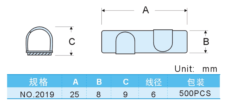 No.2019金屬電線固定座尺寸: