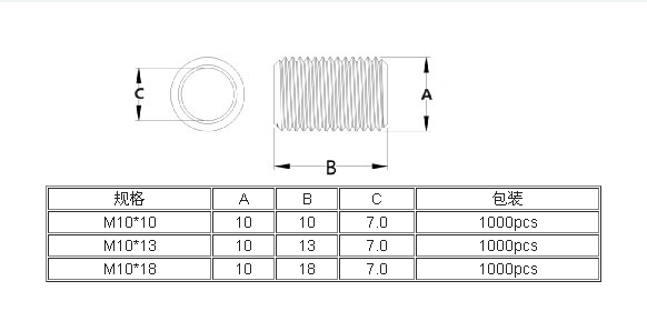 產品名稱: M10*1.0mm空心牙節PC透明塑料空心螺絲空心全牙螺桿牙節螺紋管
