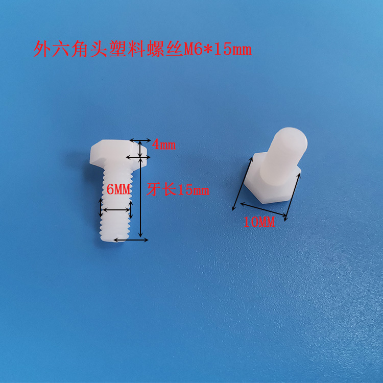 產品名稱:白色尼龍外六角螺栓M6*15六角頭螺絲 絕緣塑膠螺絲