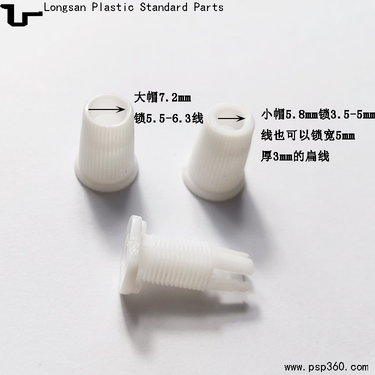 鎖線范圍:大帽直徑7.2mm,鎖5.5-6.3mm線材,小帽直徑5.8mm,鎖3.5-5mm圓線也可以鎖寬5mm厚3mm的扁線