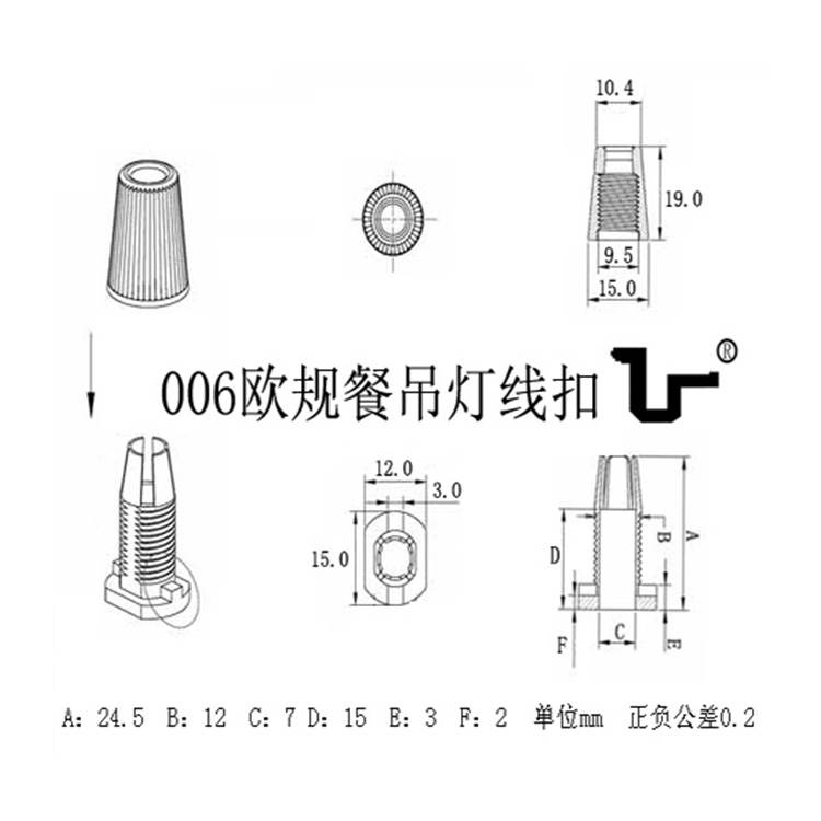 006吊燈線扣規格圖: