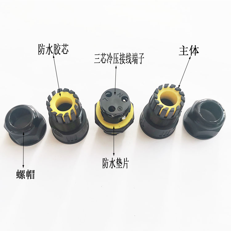 5.防水密封圈 采用緊鎖爪,在擰緊螺絲時(shí)可調(diào)緊線口內(nèi)部橡膠能緊緊咬合電纜表面