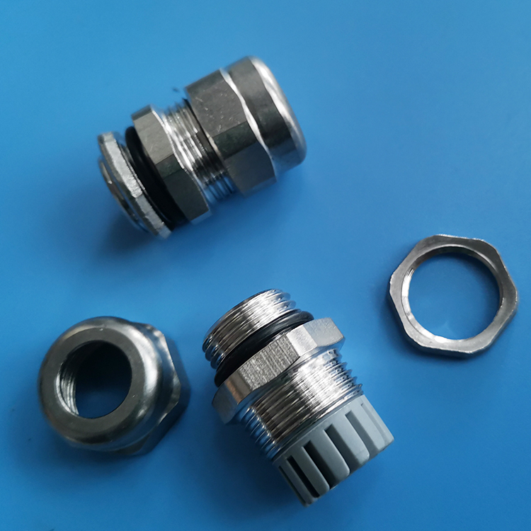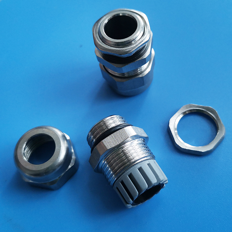金屬電纜防水接頭是電纜的配套產品,接頭可將電纜鎖緊,另一端可接入設備箱體上,也可以根據選用螺紋接入進出口為內螺紋的電動設備上。