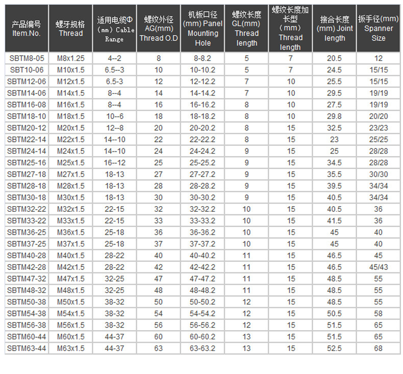 特殊夾緊爪與夾緊圈凹凸相扣設計,配合迫緊頭裝配省時便利,夾緊電纜范圍大、抗拉力強、可防水、防塵、抗鹽、耐酸堿、酒精、油脂及一般溶劑。