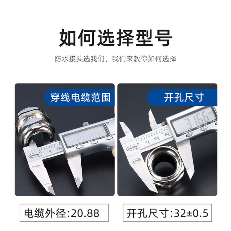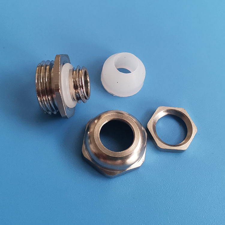 金屬電纜防水接頭是電纜的配套產品,接頭可將電纜鎖緊,另一端可接入設備箱體上,也可以根據選用螺紋接入進出口為內螺紋的電動設備上。