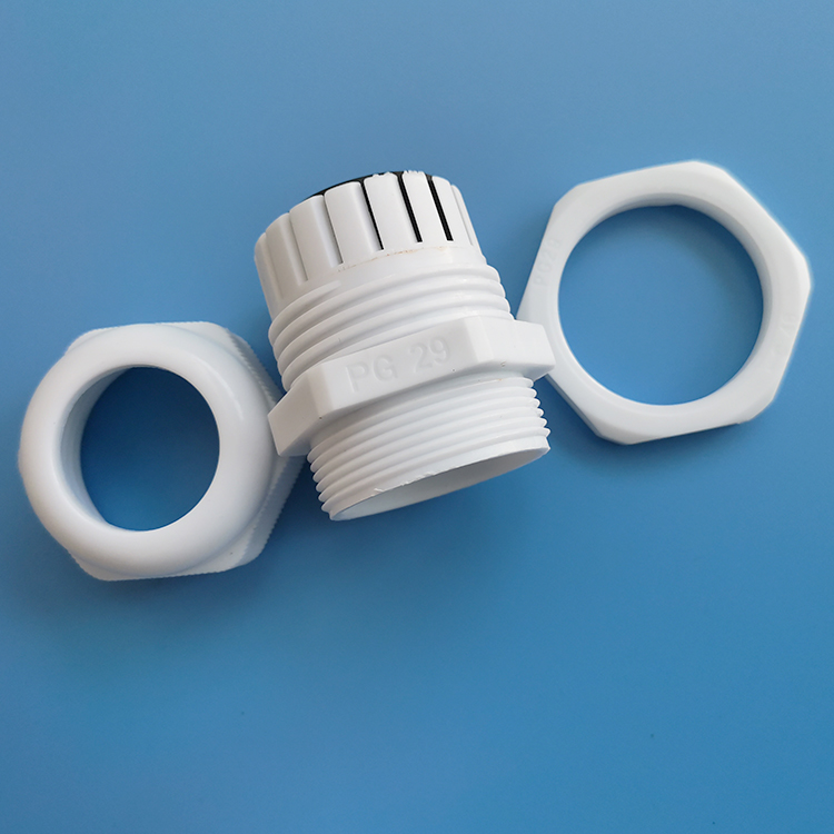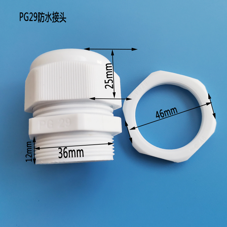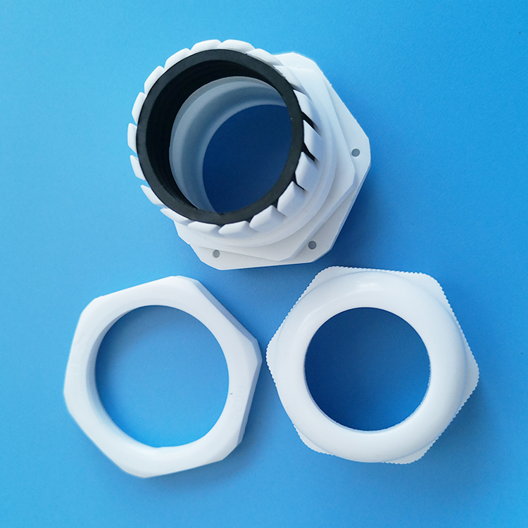 構造:本產品分成螺帽、主體及螺母三部分,可配合密封墊片使用;起到固定及防水的作用。