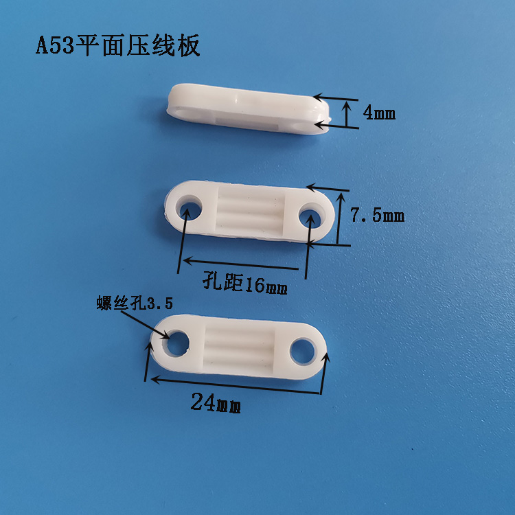 產品名稱:孔距16mm平面圓角壓線板A53壓線片 一字壓線碼 塑膠固定片
