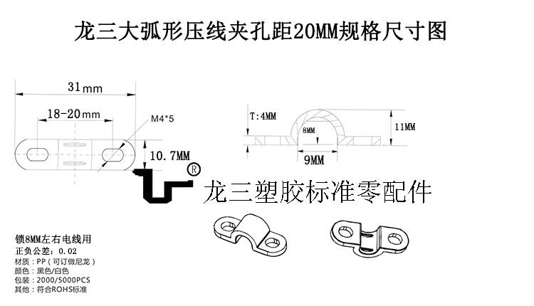 產品名稱: 291弧形壓線板塑料一字壓線板橋型壓線扣適用于電線8-12mm