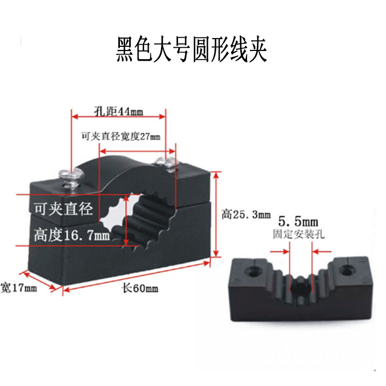 該款產品有3個尺寸如下圖,客戶可根據電源線的大小來選擇相應型號的電纜固定夾,電纜固定夾的主要用途是固定電線電纜及管道等作用。