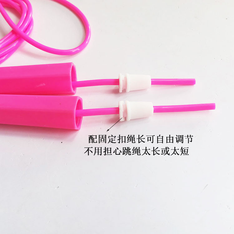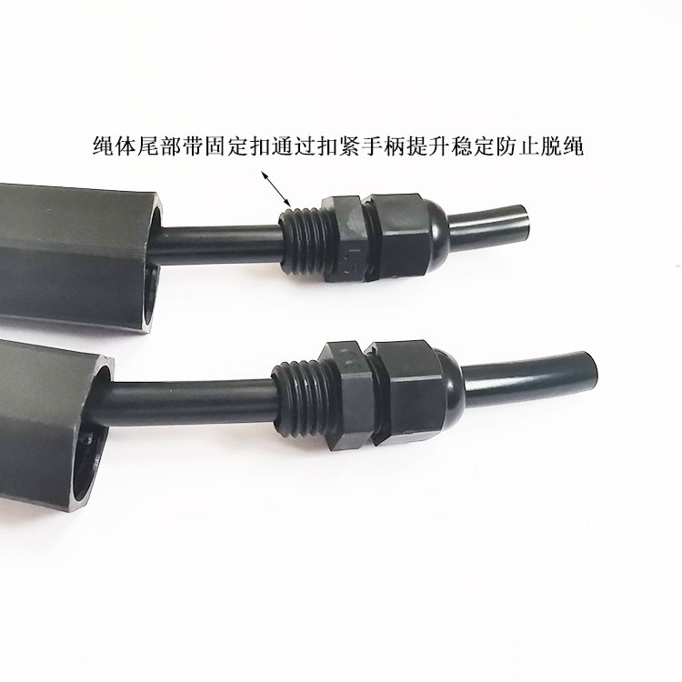 2.繩子長短可自由調節,找到適合自己的繩長。(在手柄尾端,把繩子拉出,松開固定扣,將過長的繩子拉出打結或剪掉)