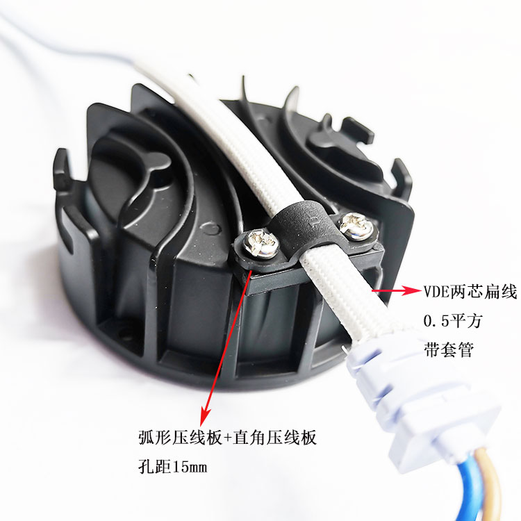 經過兩天的測試,我們給出了2份方案。第一份方案還是采用原來的孔距15mm小弧形壓線板+直角型壓線板對壓,線材上面套上套管來增加線材的直徑,使線材變粗一些。這個方案的難點在于套套管比較麻煩,裝配過程也會變慢。第二份方案是用兩個孔距15mm的直角壓線板對壓,使線材固定,如果還是覺得不夠緊,可以把直角壓線板反一面固定,采用這種方案,我們建議兩邊固定的螺絲要加長一些,這樣就能壓緊了。